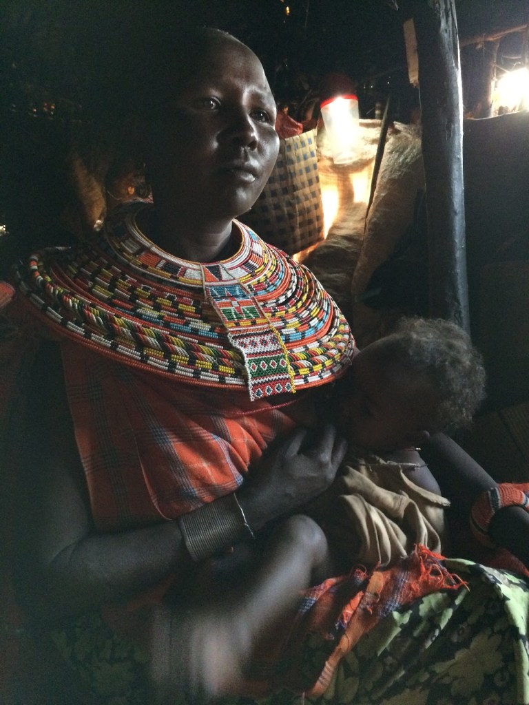 This is one of the women who have helped me with my research project into the smoke cured fermented milk of the Samburu. This is taken within the woman’s house, a stick structure a few meters in diameter with a roof too low to enable one to stand up. There is one door, often narrow so that one has to go through sideways, and no windows. As a rule, in order to photograph inside the house, with permission, of course, I take material off the exterior, moving a piece of cardboard, for example, or a piece of plastic sheeting in order to let light in. I no longer recall the exact situation with this house, but I’d be surprised if what appears to be a window just below the roof is, indeed, a window. I can’t recall ever having seen a Lowland Samburu house with a window. The Highland houses up by Maralal, for example, where there is more wood, are bigger, often with multiple rooms, higher ceilings so one can stand, and the occasional window. This woman lives in the area called Lkisin, near Wamba.